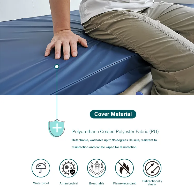 The hospital bed foam mattress comes equipped with a zippered cover made of nylon for easy cleaning. The base cover is also liquid-proof and easy to wipe clean. Always follow the care instructions on the label to ensure long-lasting use.